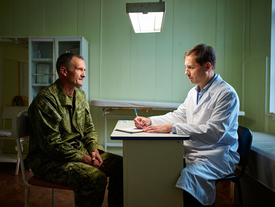 • полное медицинское обследование с акцентом на последствия ранений и контузий;